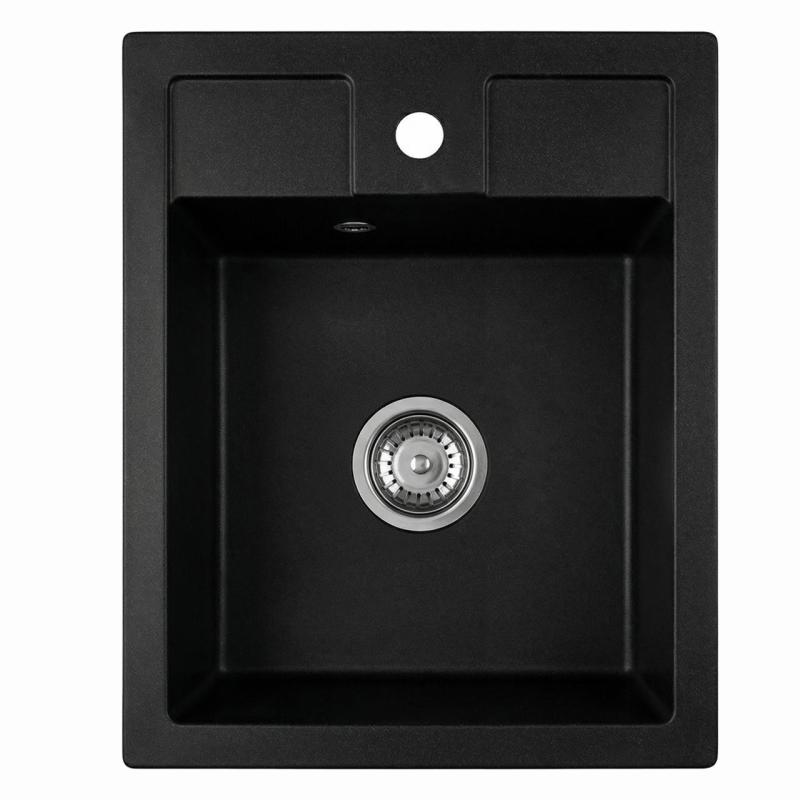 Graniteland Prest Granite Black Sink Tapwing with tap hole base surface mount 400x500mm with Stainless Steel Plug 1208971421