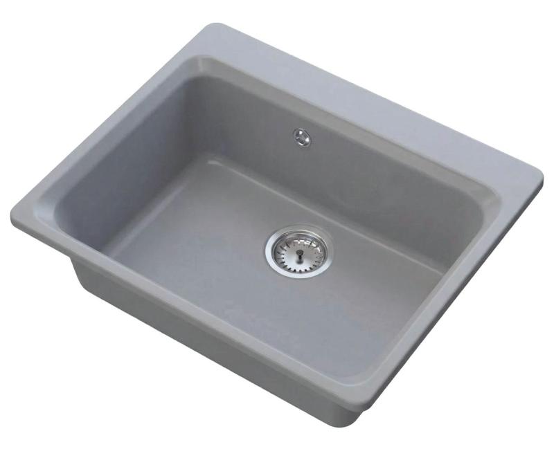 Graniteland Vastone Granite Sink 619x522 mm Gray Top Mount with Faucet Hole Bench and Stainless Steel Plug 1208971448