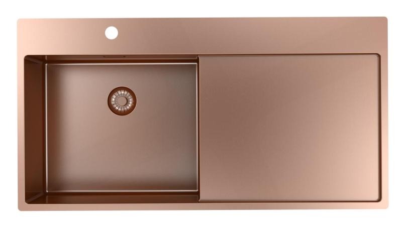 Pure.Sink Exclusivo Copper sink with draining board 100x52 cm Tapwing left PEX47100LT-62