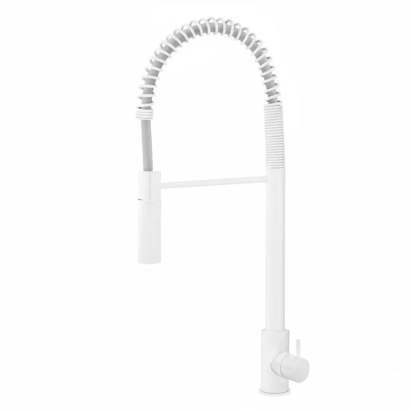 The Waterevolution Flow semi-professional kitchen mixer tap in matte white with column and spring T157BR is an absolute must-have for any modern kitchen. With its sleek and contemporary look, this tap will be a stylish addition to your interior.